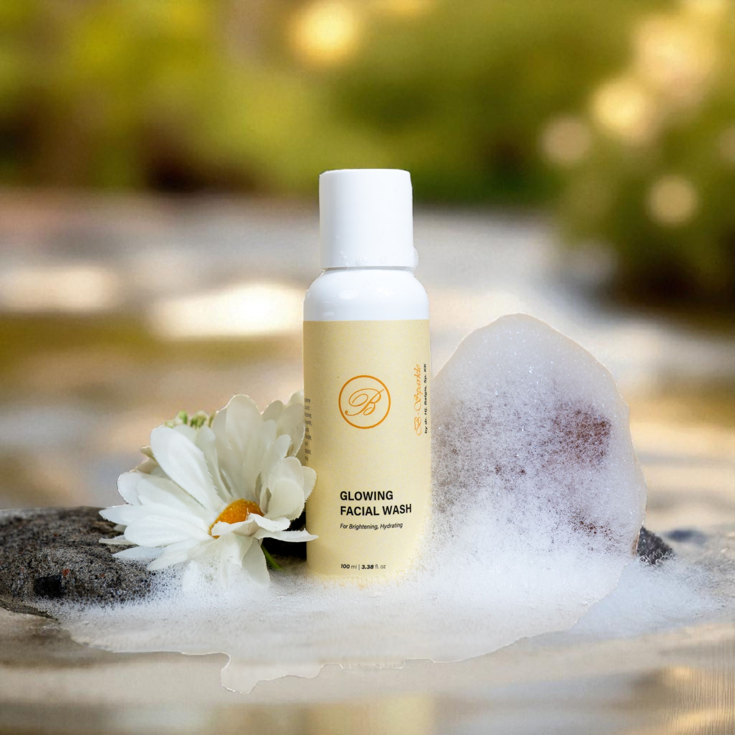 Glowing Facial Wash B-Sparkle dengan kandungan utama Glycolic Acid atau Alfa Hydroxy Acid dan bahan-bahan berkualitas lainnya berfungsi membersihkan kulit wajah. Memiliki fungsi menjaga kelembapan kulit, antibakteri, antioksidan, mencerahkan kulit yang kusam, meratakan warna kulit, membersihkan dan mengecilkan pori-pori kulit serta melawan tanda-tanda penuaan dini.